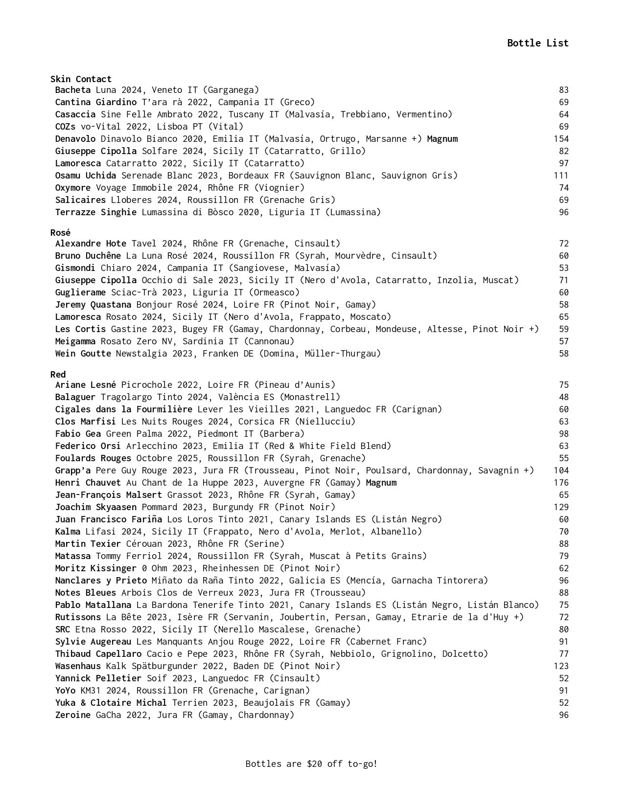$20 off all bottles